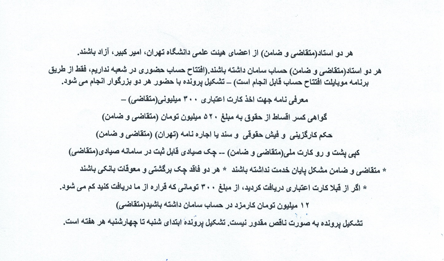 - ارائه گواهی کسر از حقوق از اداره کل امور مالی دانشگاه.